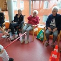 Publiée le 17/03/2020En cette après midi pluvieuse et confinée, il y a de la bonne humeur aux rossignols ! Laure(psychomotricienne) et Nathalie (ergothérapeute) font bouger les résidents du 2ème étage autour d'un parcours de marche. Les éclats de rire ponctuent les "prestations" de chacun, avec un ballon de baudruche pas toujours maîtrisé! Lire la suite